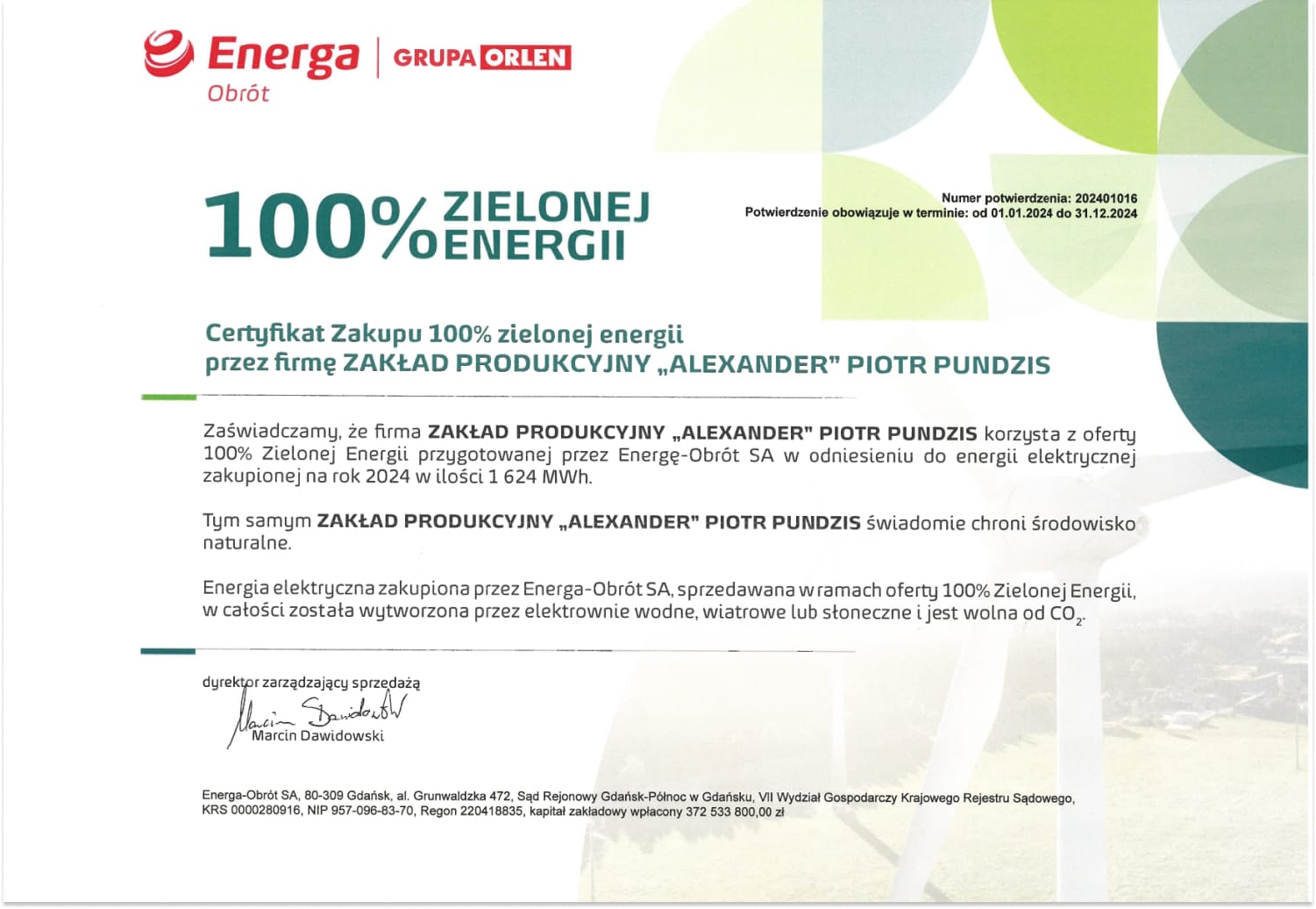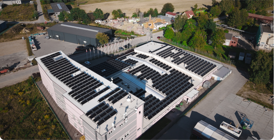 Od 2020 roku do produkcji energii korzystamy z systemu fotowoltaicznego SolarEdge o łącznej powierzchni generatora PV 254,2 m2.