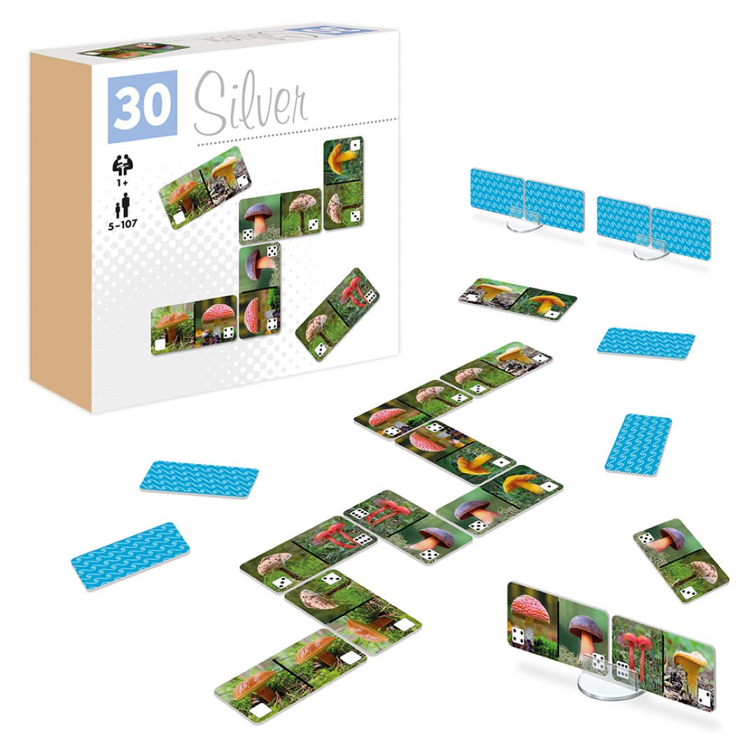 "Domino" Silver to seria klasycznych gier składających się z prostokątnych tabliczek, przedzielonych na pół za pomocą różnej grafiki. Zabawa polega na właściwym dopasowaniu elementów prezentujących ten sam obrazek. Wygrywa w niej ten, kto pierwszy pozbędzie się swoich tabliczek, przez dokładanie ich do odpowiedników leżących na stole. Większy niż standardowo rozmiar tabliczek ułatwia chwytanie.