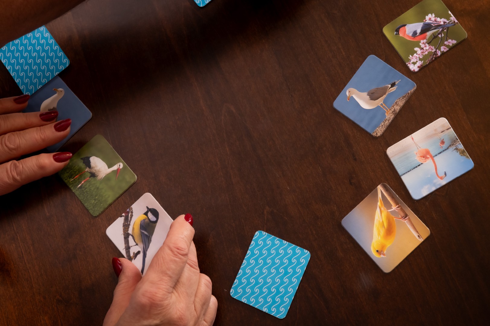 „Memosy” z serii Silver to klasyczna gra, w której wygrywa ten, kto najlepiej zapamięta położenie par tych samych obrazków. Tabliczki rozkładamy na stole rewersem do góry, a potem odkrywamy po dwie na raz i staramy się zapamiętać ich położenie, aby odnaleźć wszystkie pary.