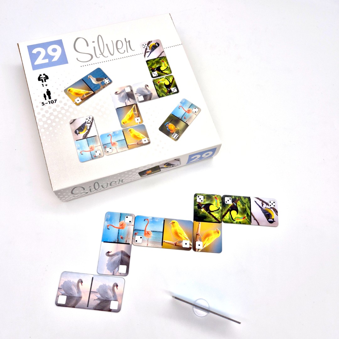„Memosy” z serii Silver to klasyczna gra, w której wygrywa ten, kto najlepiej zapamięta położenie par tych samych obrazków. Tabliczki rozkładamy na stole rewersem do góry, a potem odkrywamy po dwie na raz i staramy się zapamiętać ich położenie, aby odnaleźć wszystkie pary.