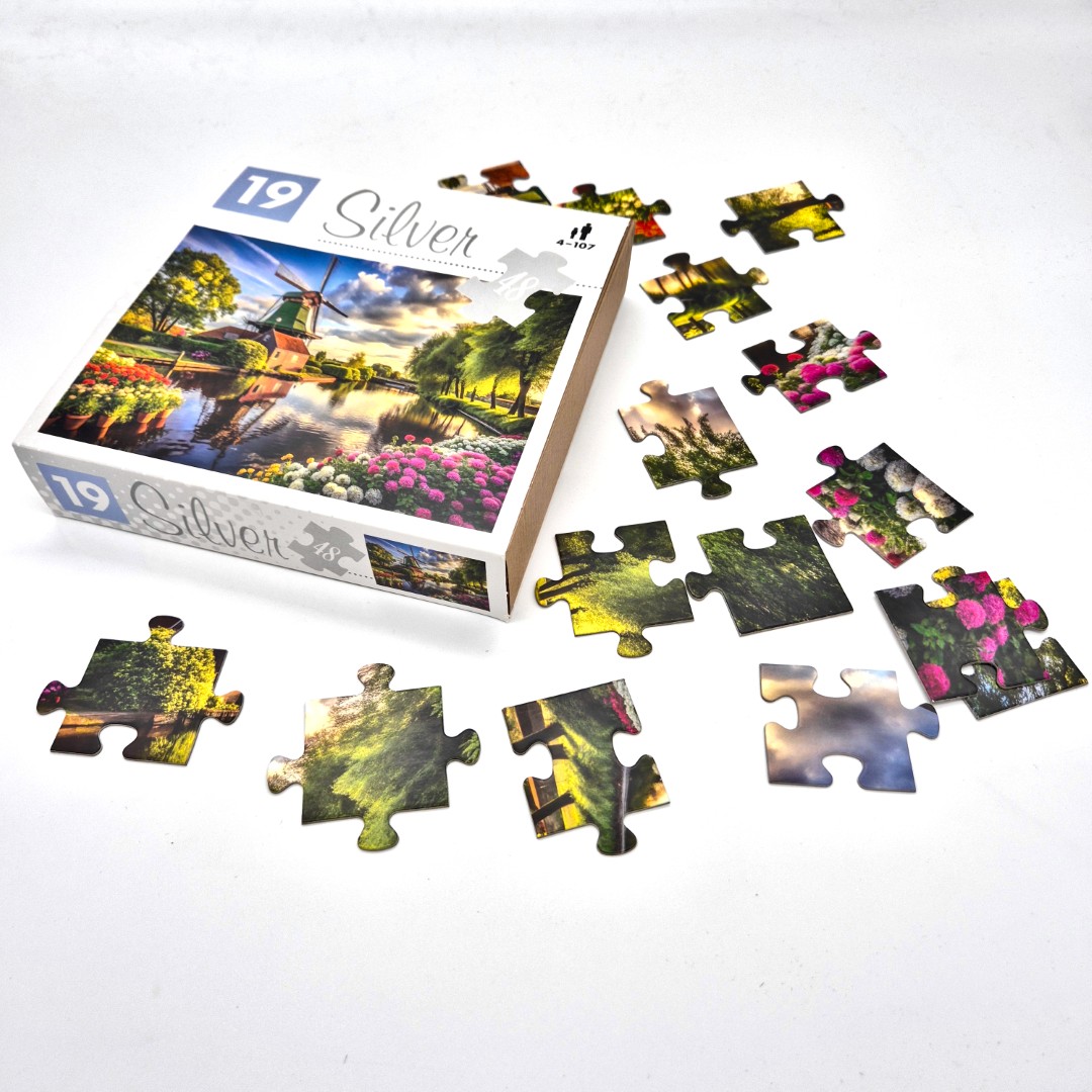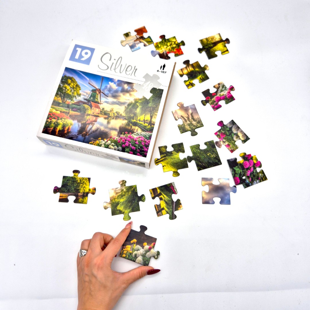"Puzzle" z serii Silver zostały stworzone z myślą o komforcie i potrzebach osób starszych oraz osób z ograniczoną sprawnością dłoni. Duże, solidne elementy o ergonomicznym kształcie są łatwe do chwytania, co umożliwia wygodną i bezstresową zabawę. Każdy zestaw zawiera starannie dobrane wzory – od uspokajających krajobrazów po proste, kontrastowe ilustracje – które ułatwiają rozpoznawanie i dopasowywanie fragmentów, wspierając koncentrację oraz pamięć.
