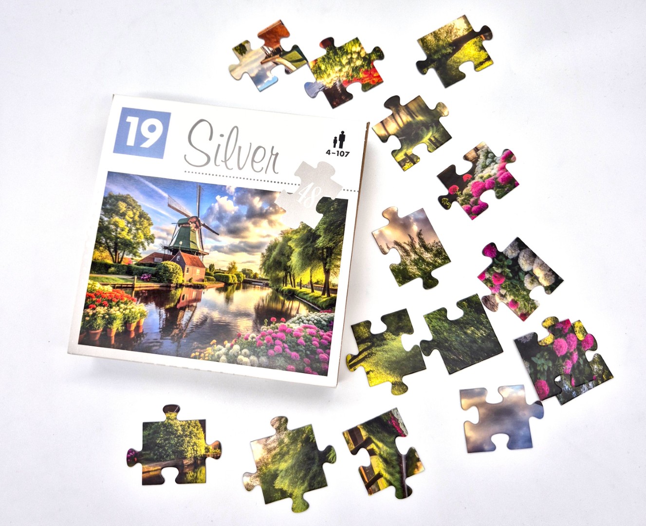 „Puzzle” z serii Silver zostały stworzone z myślą o komforcie i potrzebach osób starszych oraz osób z ograniczoną sprawnością dłoni. Duże, solidne elementy o ergonomicznym kształcie są łatwe do chwytania, co umożliwia wygodną i bezstresową zabawę. Każdy zestaw zawiera starannie dobrane wzory – od uspokajających krajobrazów po proste, kontrastowe ilustracje – które ułatwiają rozpoznawanie i dopasowywanie fragmentów, wspierając koncentrację oraz pamięć.