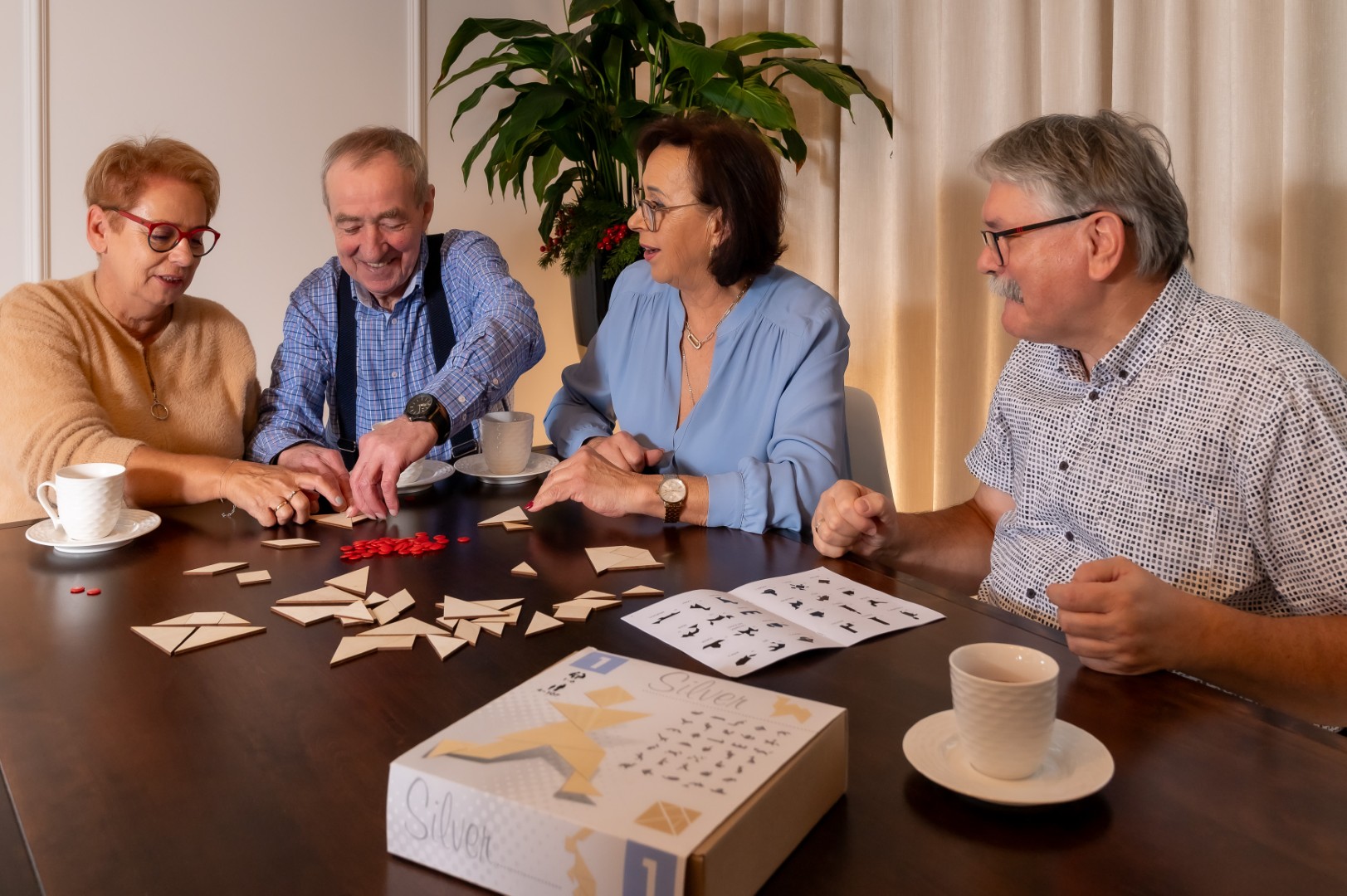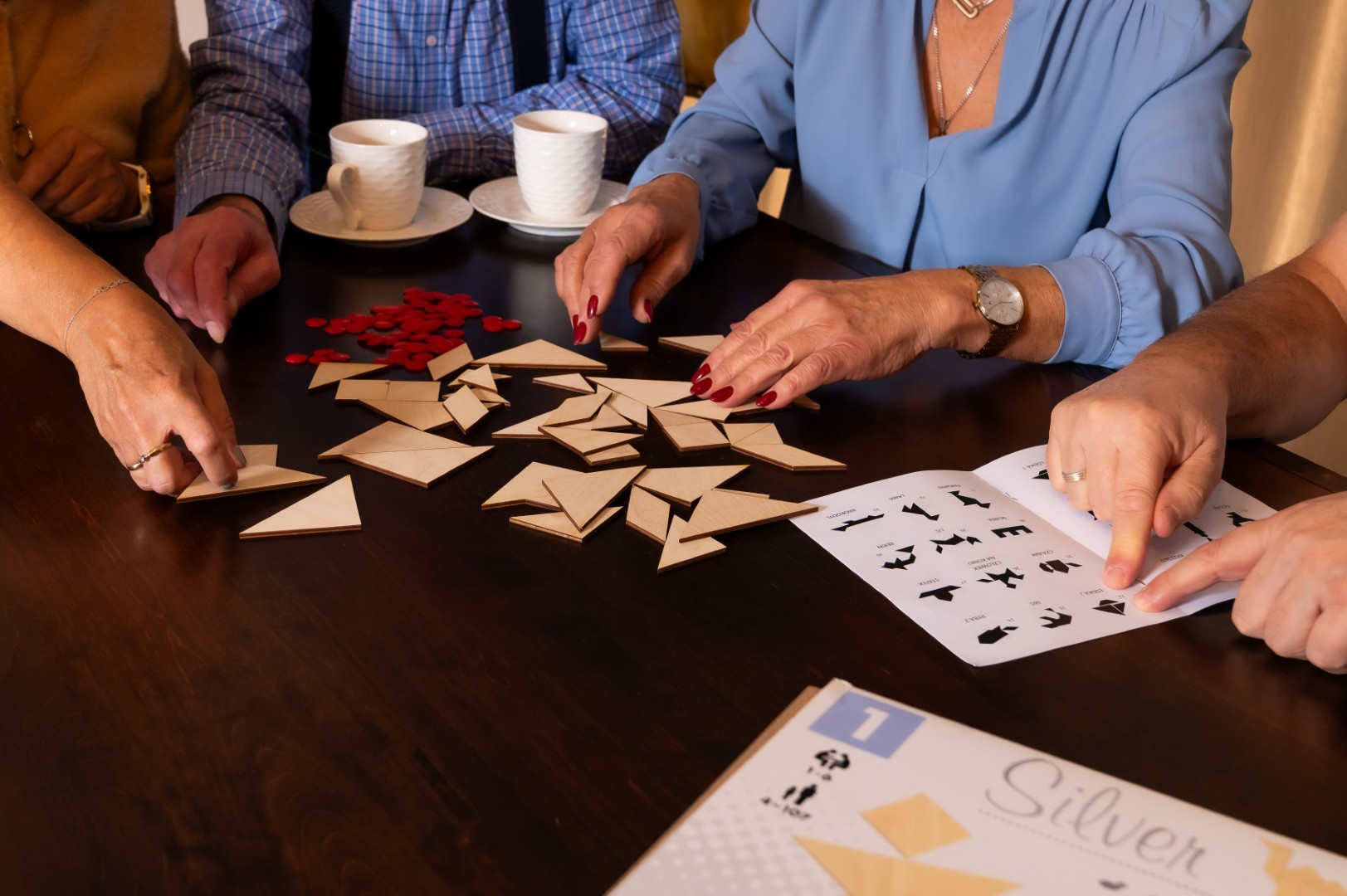 Tangram to świetna zabawa dla "srebrnej młodzieży" i sposób na spotkania w gronie przyjaciół. Gra pomaga ćwiczyć pamięć, koordynację wzrokowo-ruchową, a także wspiera osoby z problemami z widzeniem, demencją czy chorobą Parkinsona.